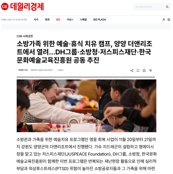 DH그룹·소방청·저스피스재단·한국문화예술교육진흥원 공동 추진
