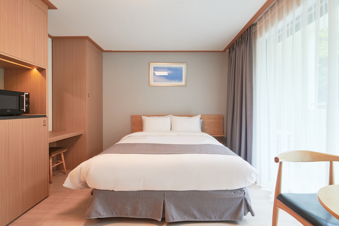 A room consisting of a double bed and ondol room designed to provide comfort and leisure.