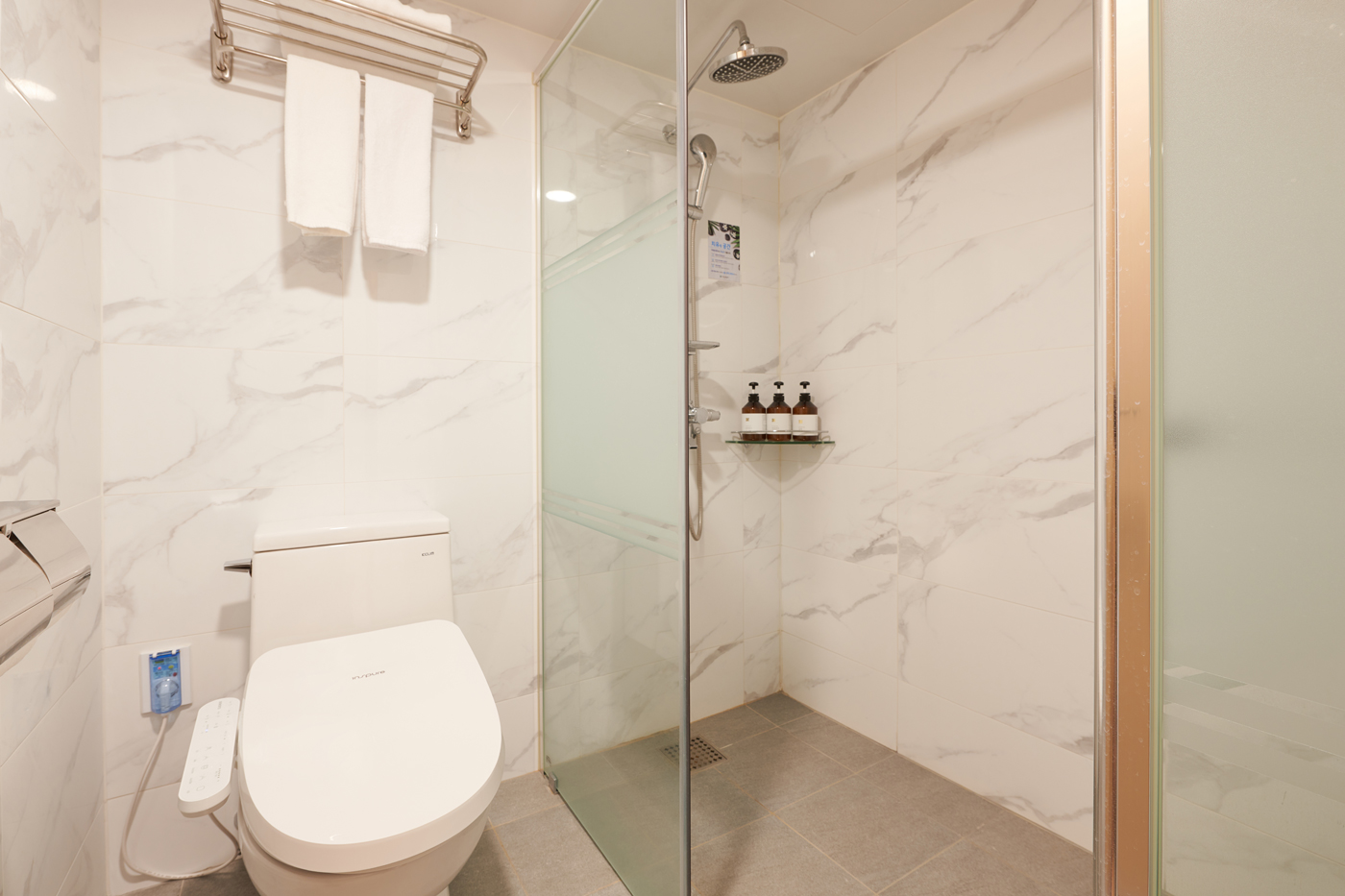 BathroomFacecloth/bath towel, shampoo/conditioner, body wash/body lotion, toothbrush/toothpaste, soap, bidet, hairbrush, hair dryer, cotton shower gown