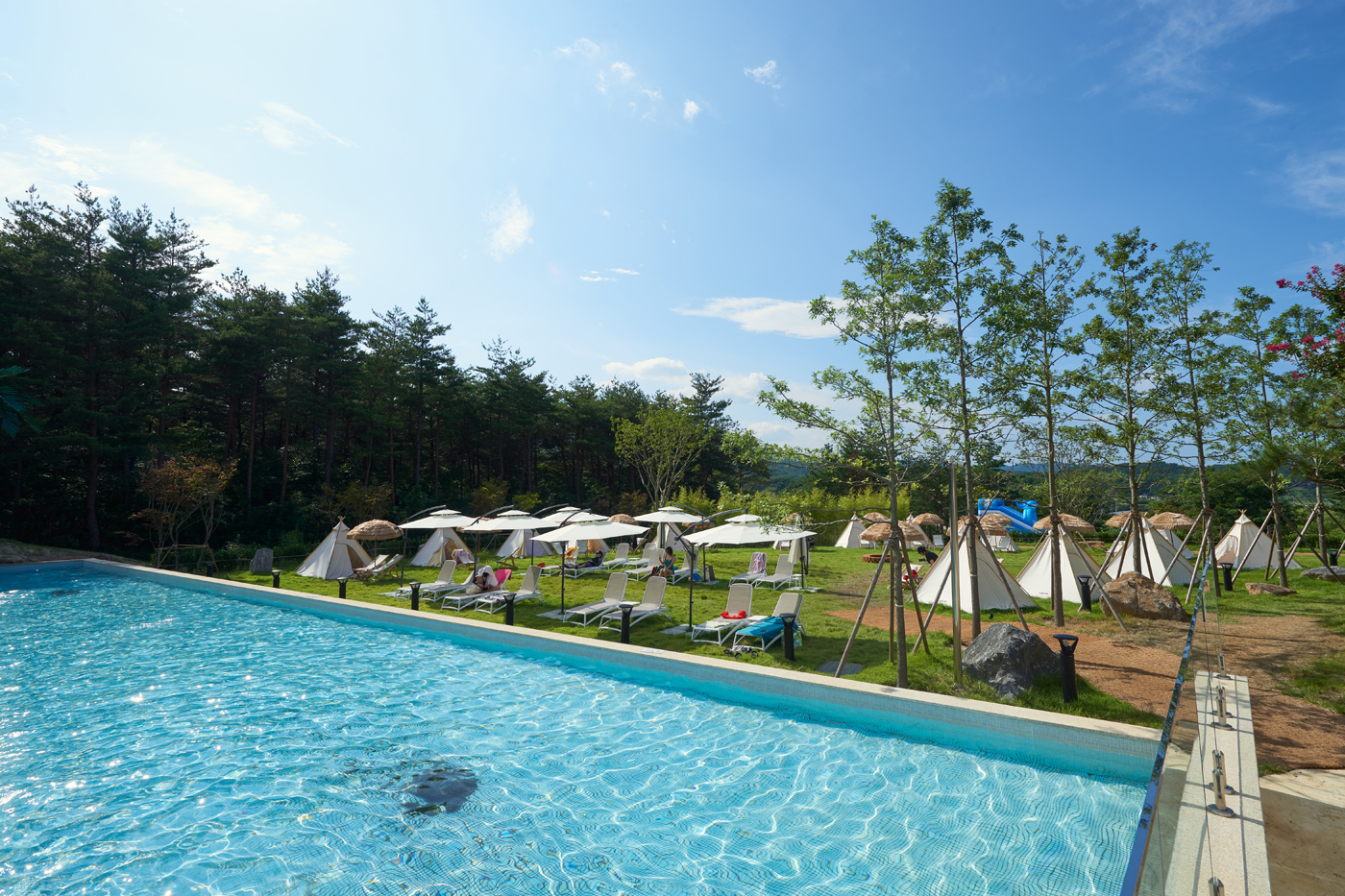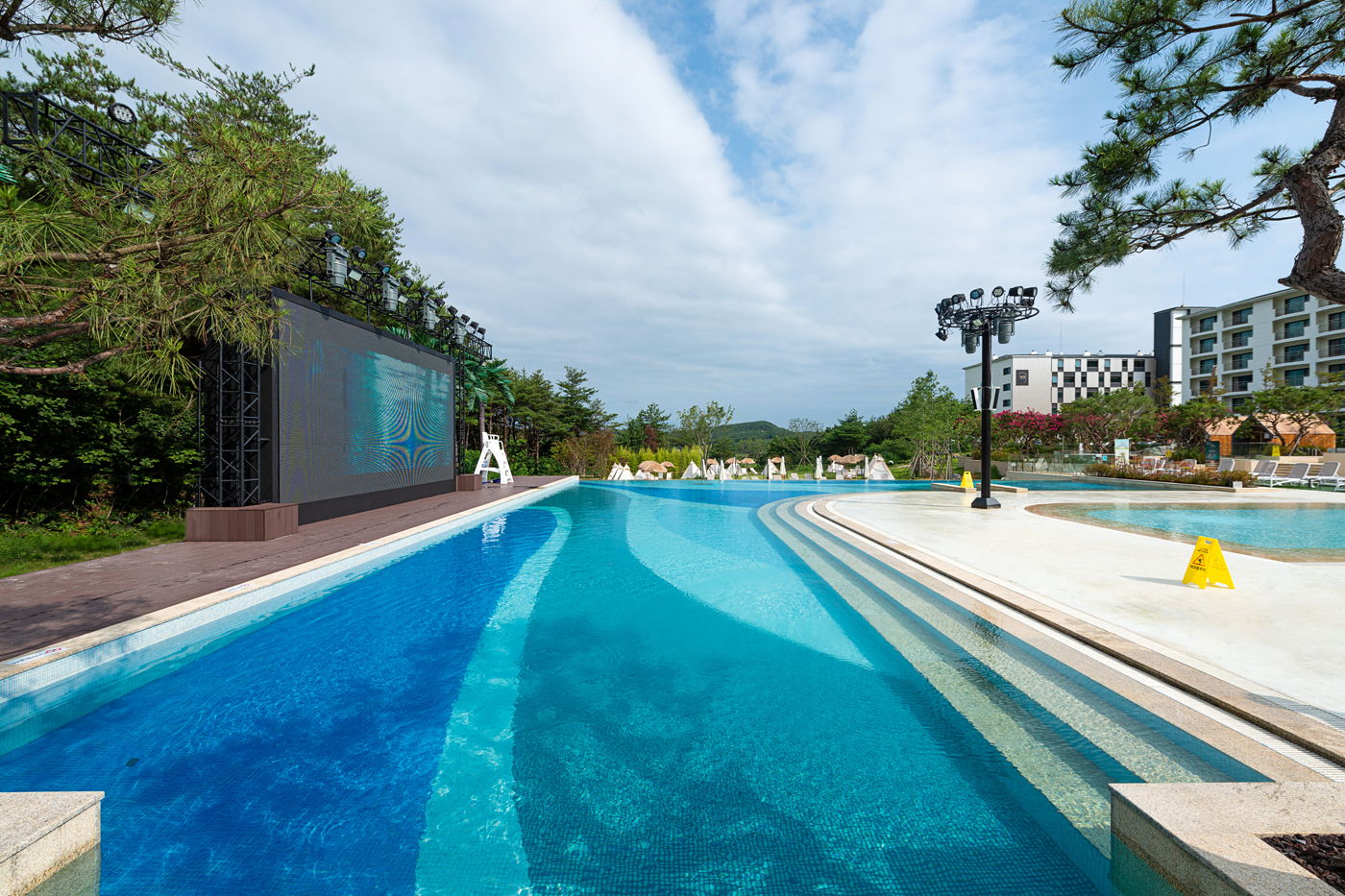 It is a hot spring swimming pool consisting of an infinity pool, a baby pool, and a hot water pool for children.