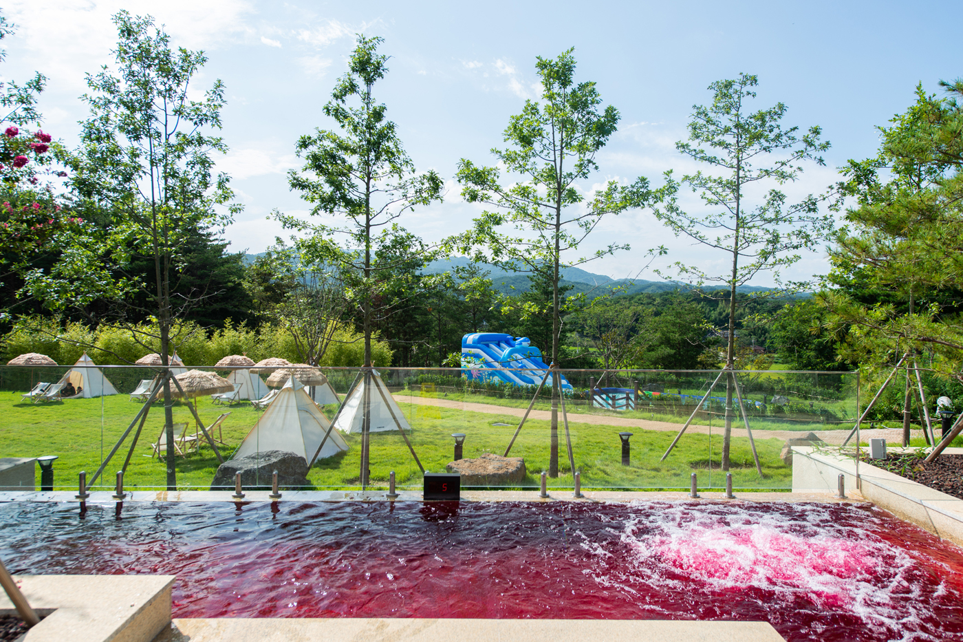 It consists of 5 event baths including a fireworks fountain, offering a variety of charms.