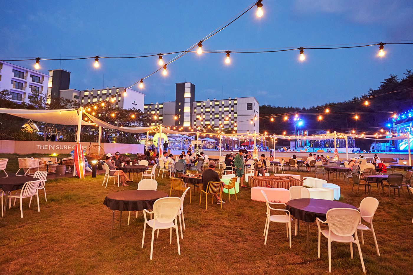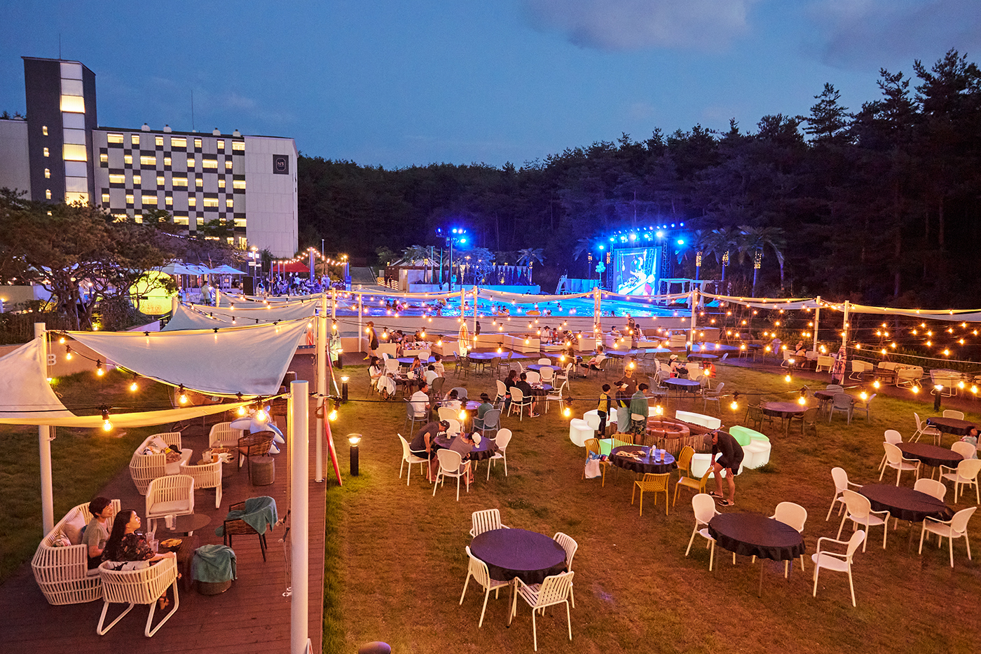 시원한 야외수영장과 밤하늘이 어우러지는 양양 최고의 야외공간으로, 파티와 음악이 공존하는 더앤리조트의 핫플레이스입니다.