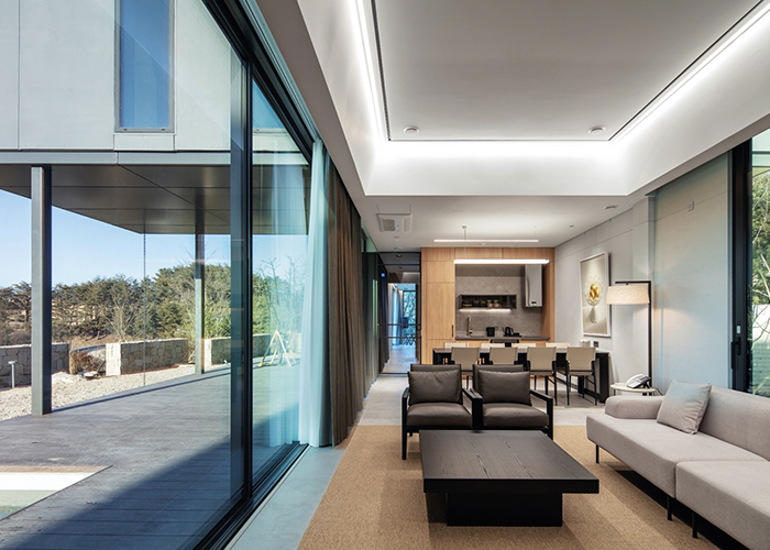 경계를 허문 그 시선 끝에는 외부 풍경이 마치 공간의 일부처럼 다가옵니다.