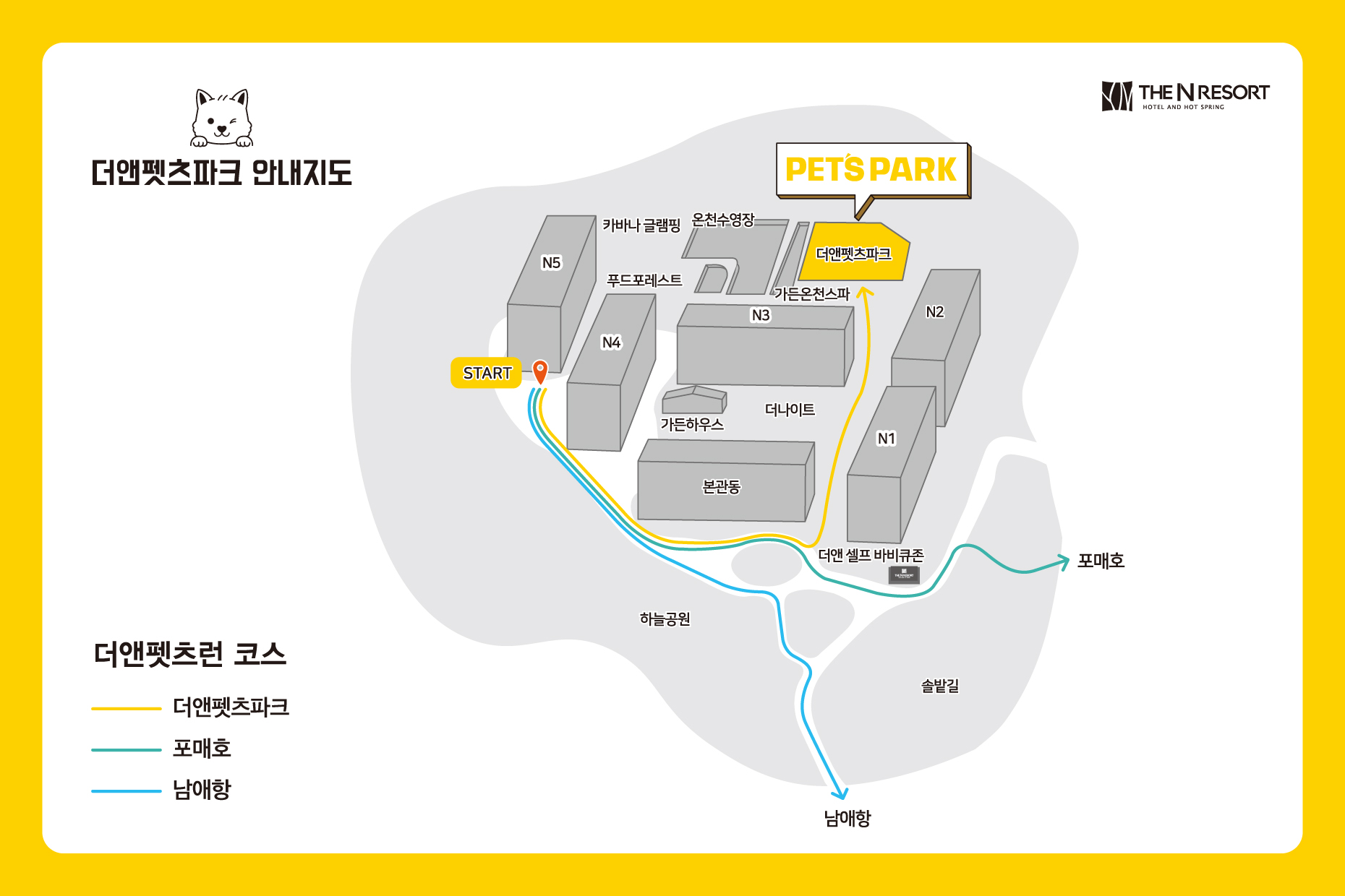 더앤 펫츠 런은 더앤펫츠룸에서 출발하여 더앤펫츠파크, 포매호, 남애항으로 가는 반려견과 함께하는 산책코스입니다.