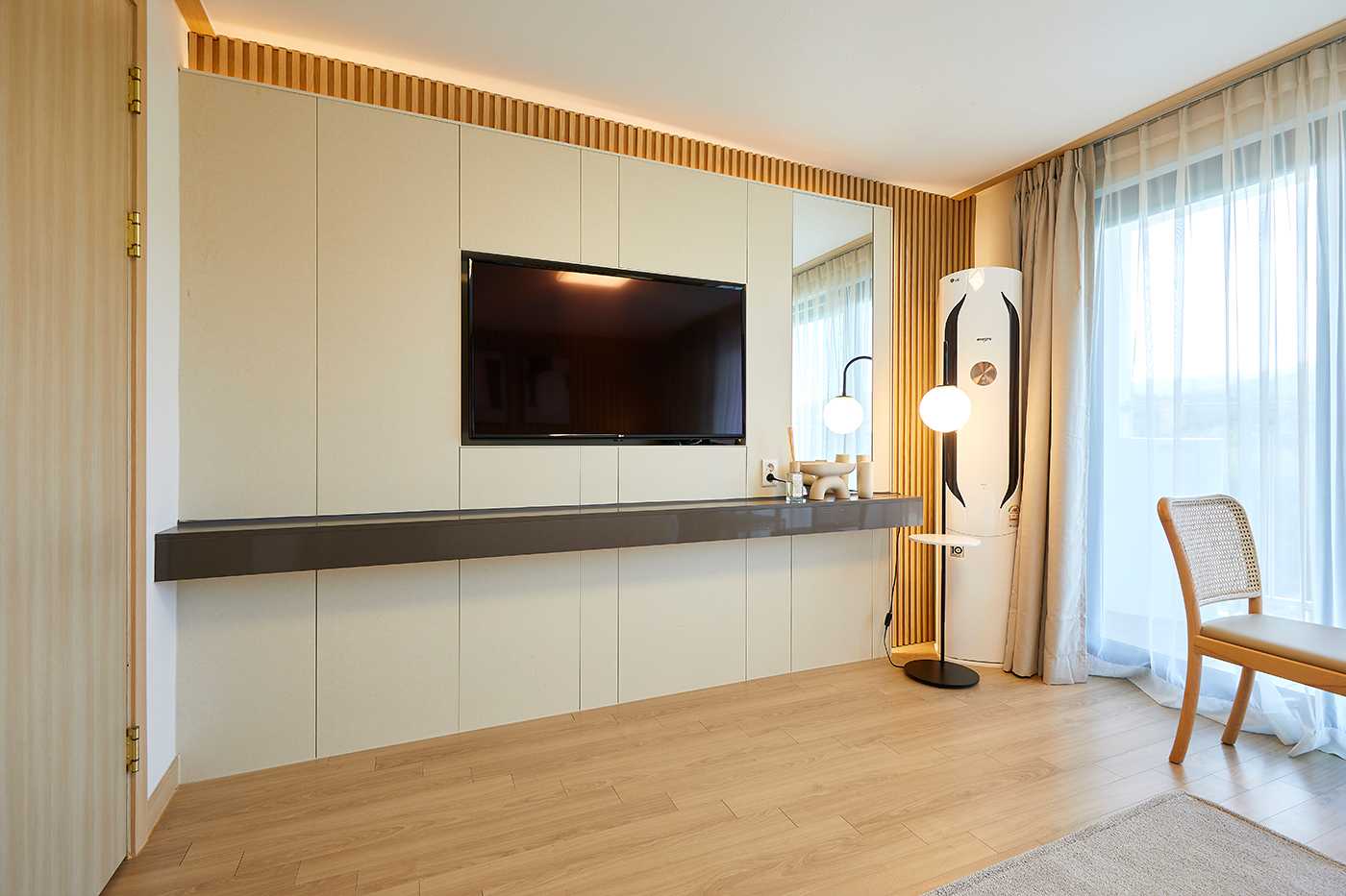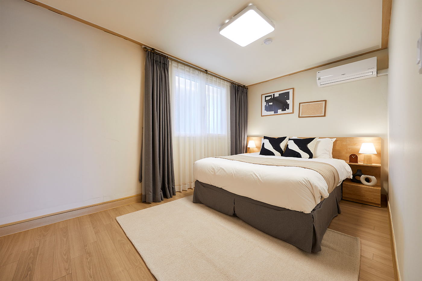 Bedroom- TV 에어컨 전화기 슬리퍼 구둣주걱 빨래건조대 무료 와이파이