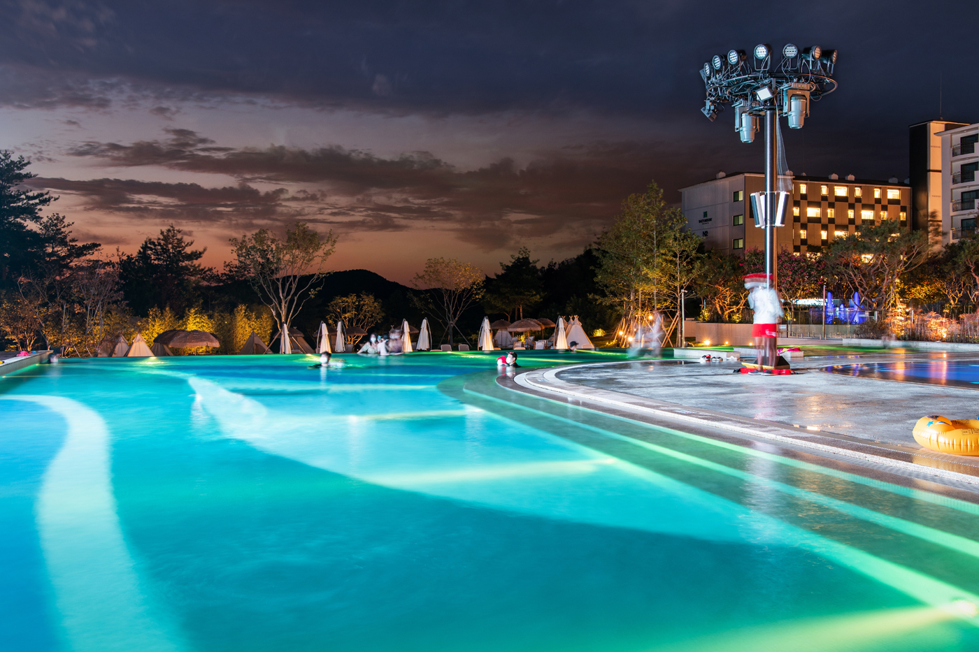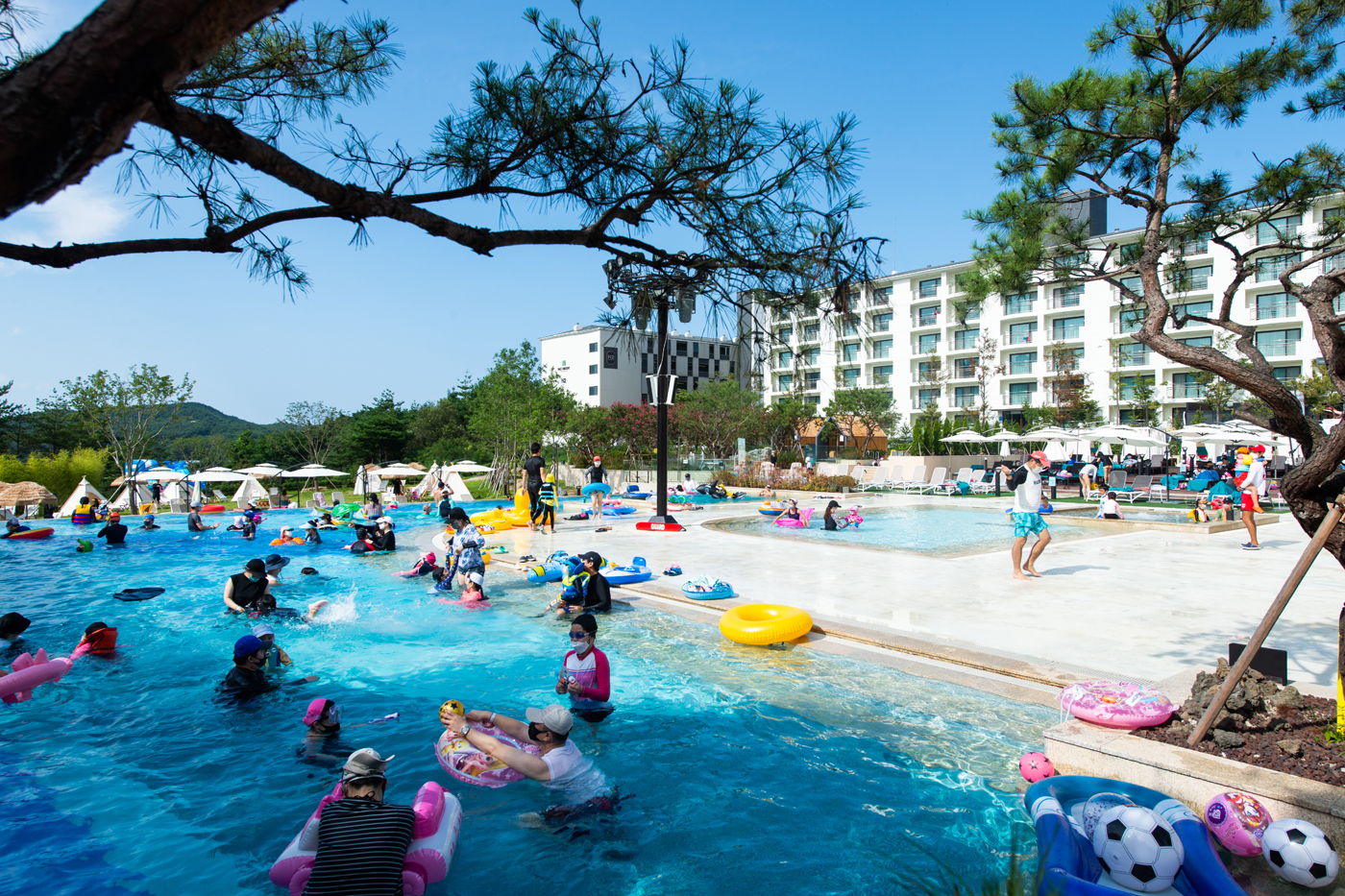 휴양지 특유의 여유로운 분위기와 자연의 낭만이 함께하는 이국적인 느낌의 매력적인 야외풀을 만나보세요.