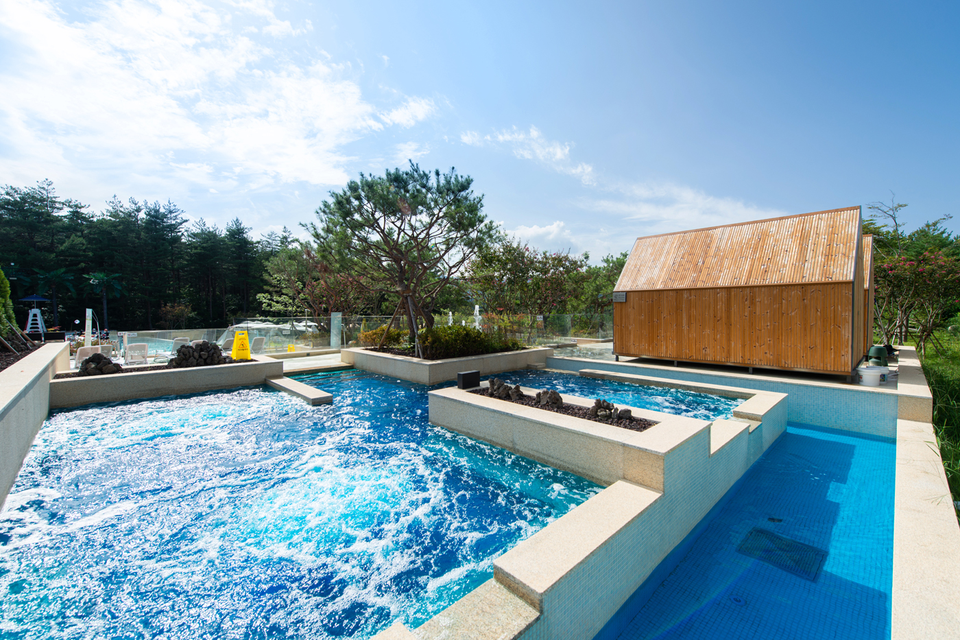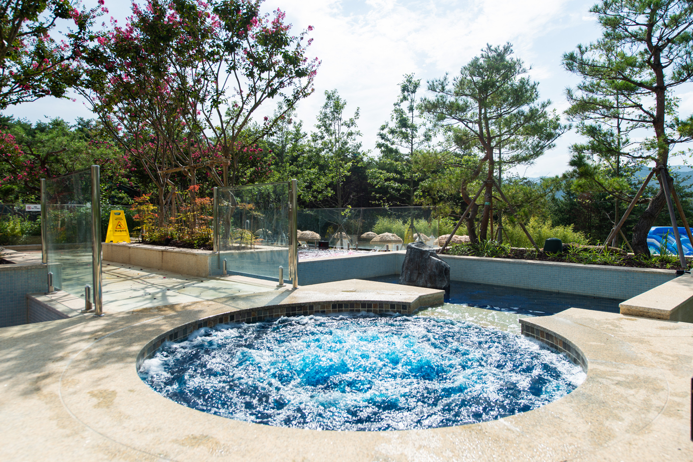정원 속 노천을 즐길 수 있는 야외 온천스파입니다.
