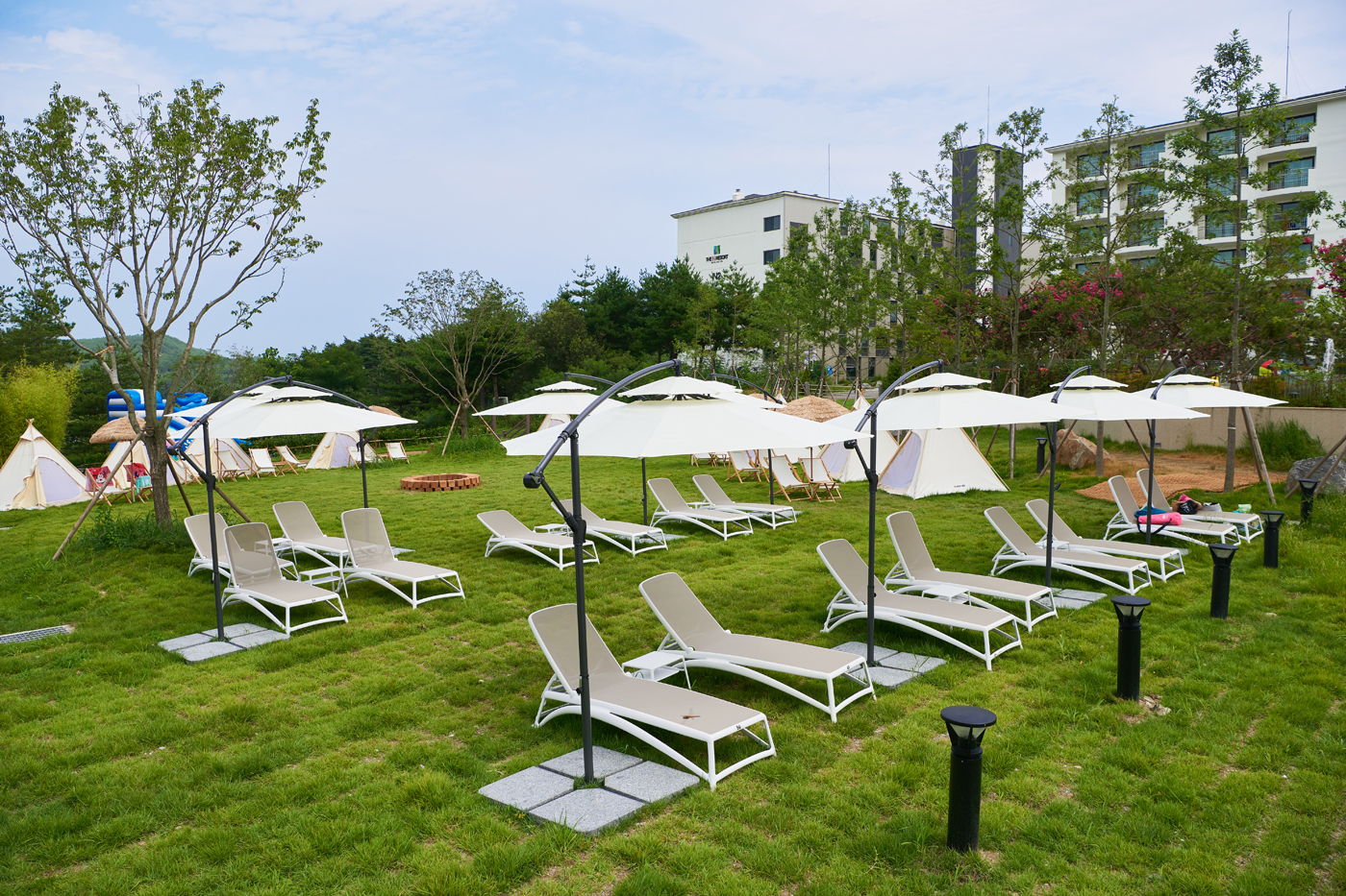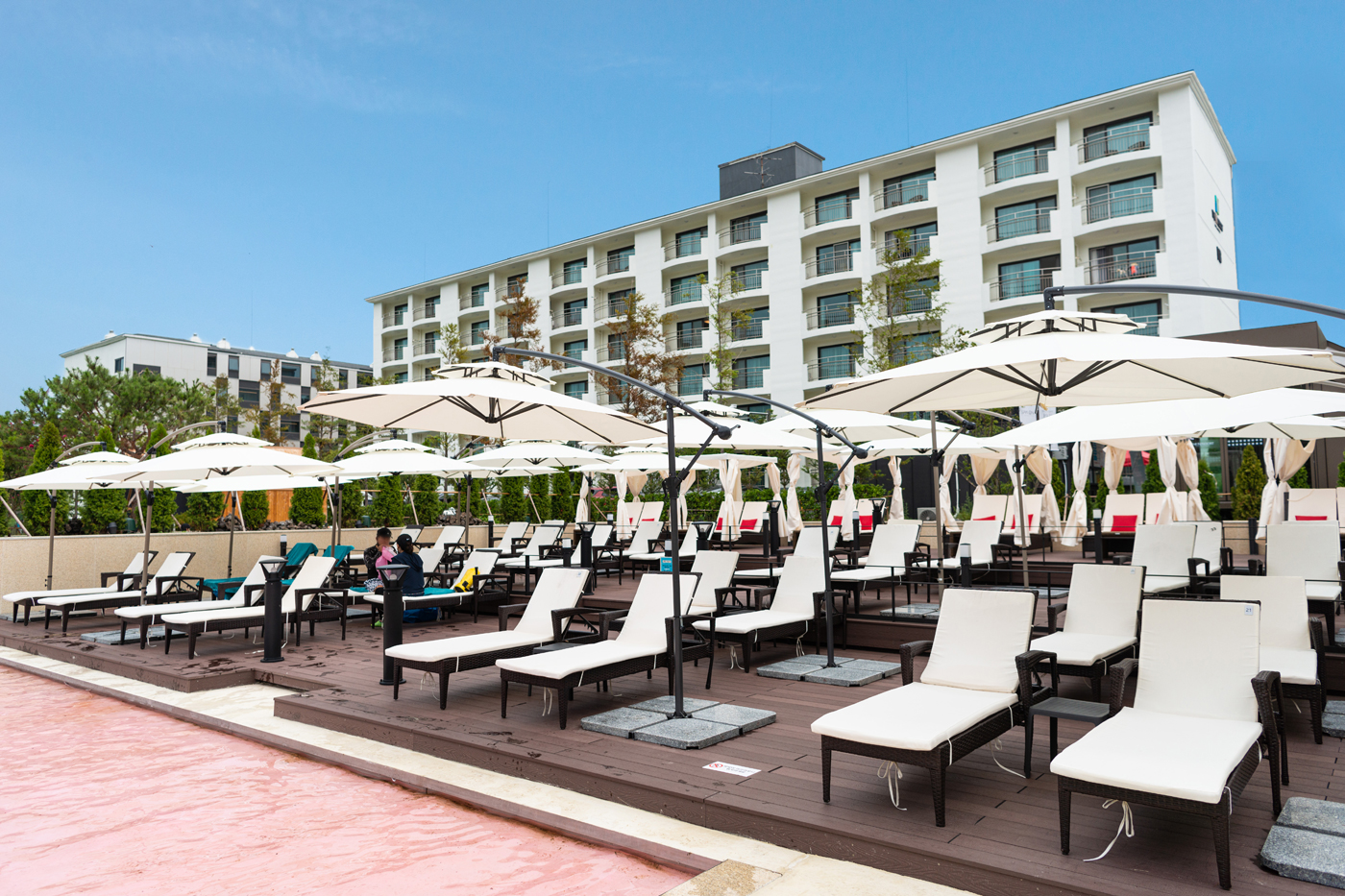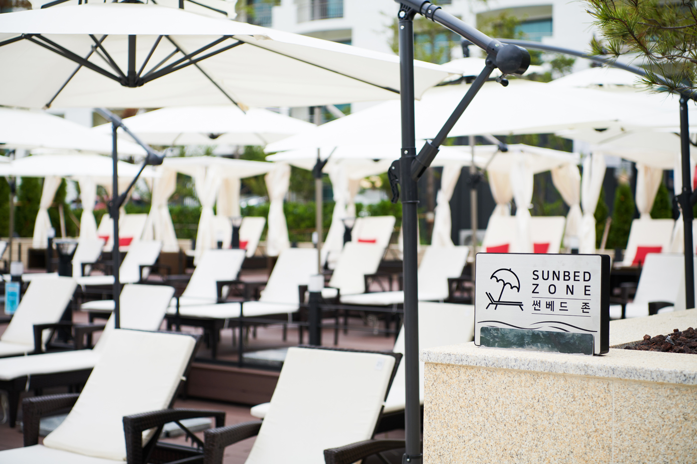 편안함과 디자인 모두를 고려한 썬베드존에서 고급스럽게 태양을 맞이해보세요.